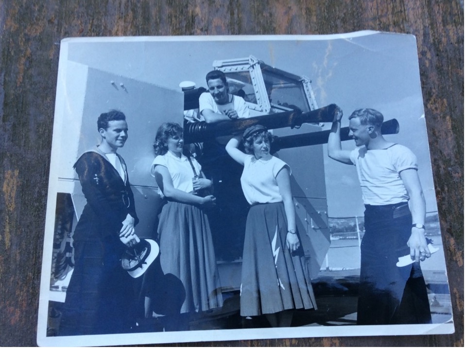 An open day in 1954 on HMS Bulwark in the Baltic with Mike far left.
