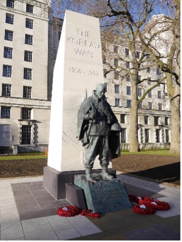 There are two memorials to the Fleet Arm at the National Arboretum. A memorial to the British soldiers in the Korean War was unveiled in Victoria Embankment Gardens on 3 December 2014. The memorial, a bronze statue of a British soldier by the sculptor Philip Jackson, with a Portland stone obelisk on a Welsh slate base, was a gift from the Government of South Korea